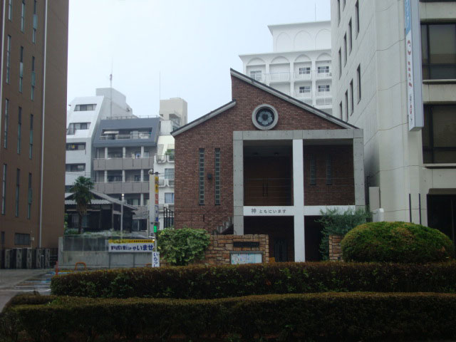 ルーテル教会から見たヤムヤムのビル。真ん中より少し左側のHOTMOTのビル白いビルを挟んで右側に見えている肌色のビルです